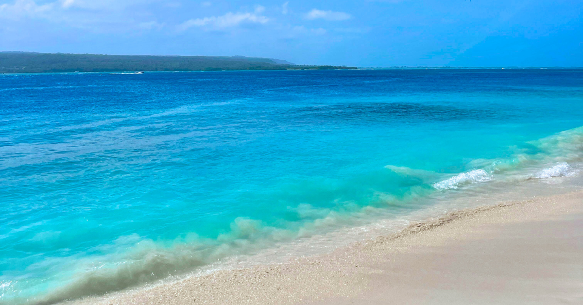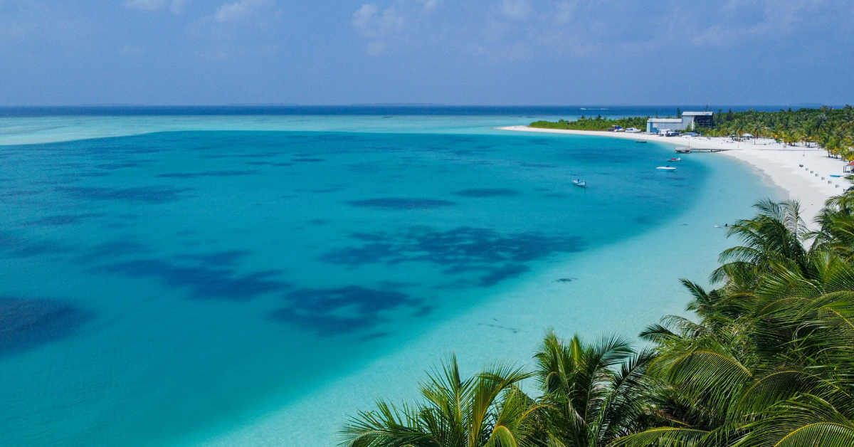- Clear seawater, visible sandbars